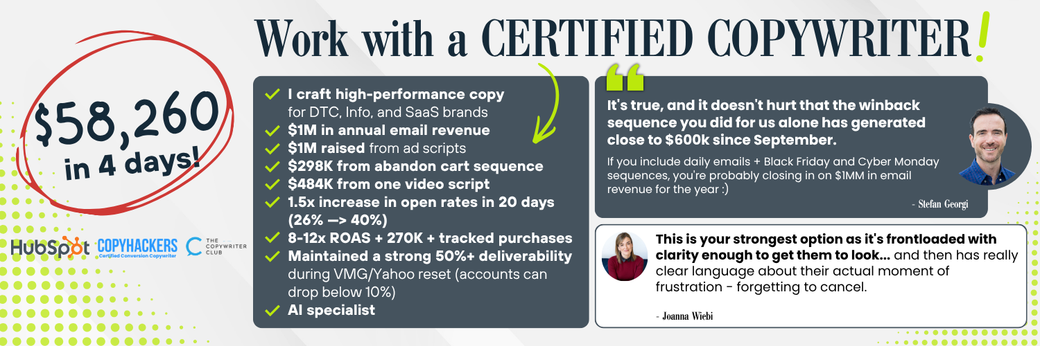 I work with DTC brands that take retention seriously. If you need emails or ads that actually convert, email me at hello@hiraosama.com.